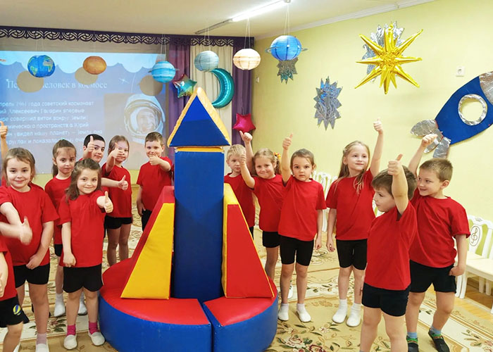 В преддверии Дня космонавтики с детьми средней группы № 2 и старшей группы № 3 было проведено увлекательное спортивное развлечение «Старт в будущее!» Ребята отправились в воображаемый полёт к далёким планетам, где их ждали интересные испытания и весёлые приключения. Дети проявили ловкость, смекалку и командный дух, проходя космические эстафеты, преодолевая «метеоритные дожди» и строя «звёздные станции». Мероприятие не только подарило массу положительных эмоций, но и расширило представления детей о космосе, первых космонавтах и важности дружбы и взаимопомощи в любом, даже самом необычном путешествии. Фото